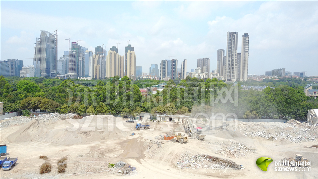 白石洲城中村内的建筑工地,“握手楼”群被推倒,白石洲正在升级