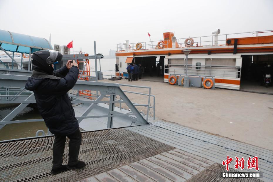 1月31日晚,上海轮渡东嫩线上运营的最后一条非空调普通轮渡结束了运营,至此,上海市轮渡公司所属黄浦江上17条轮渡航线实现了空调轮渡全覆盖,上海民众最为熟悉的“橙色系”轮渡全部退出历史舞台。图为上海轮渡东嫩线结束了“橙色系”轮渡时代,市民记录下这一历史时刻。中新社记者 殷立勤 摄