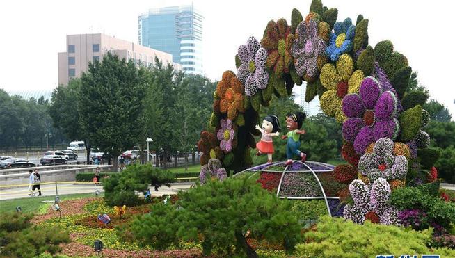北京街头靓丽花坛迎盛会