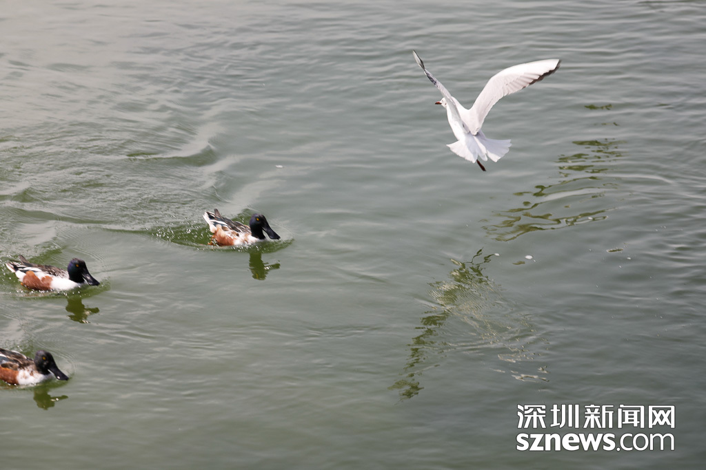 目前深圳湾候鸟以红嘴鸥和琵嘴鸭为主