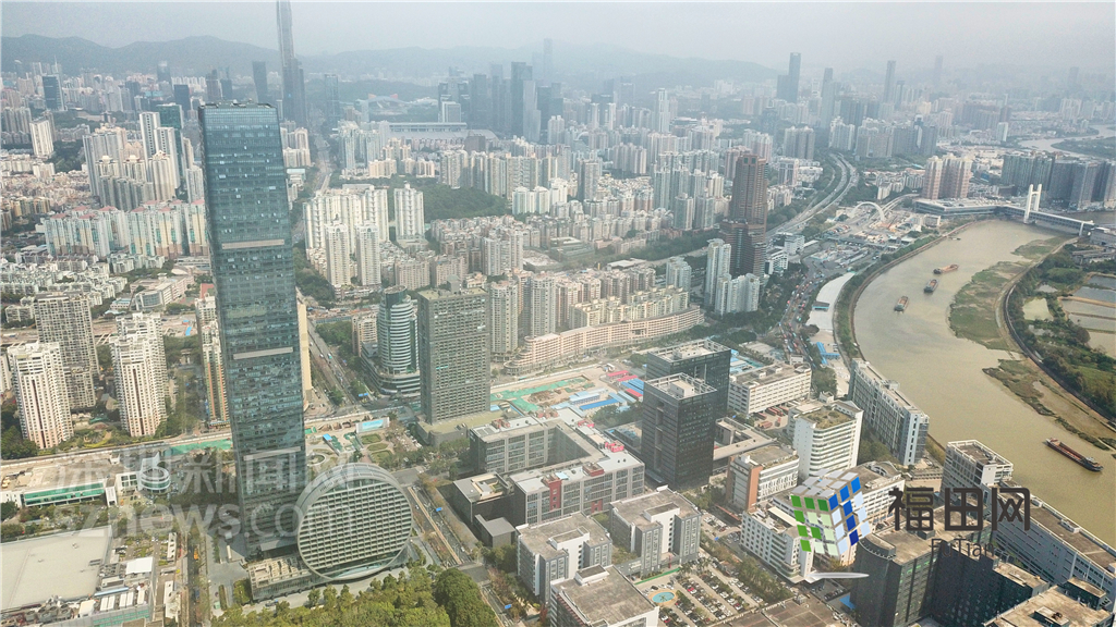 CFC长富中心东面是落马洲河套地区的生态景观和罗湖的景色。
