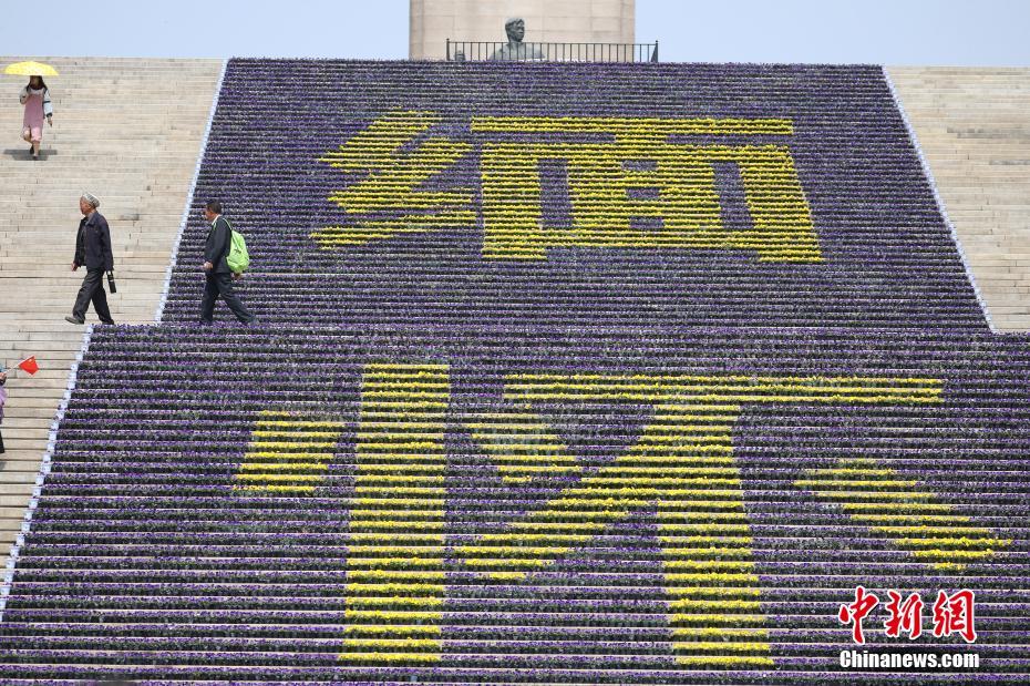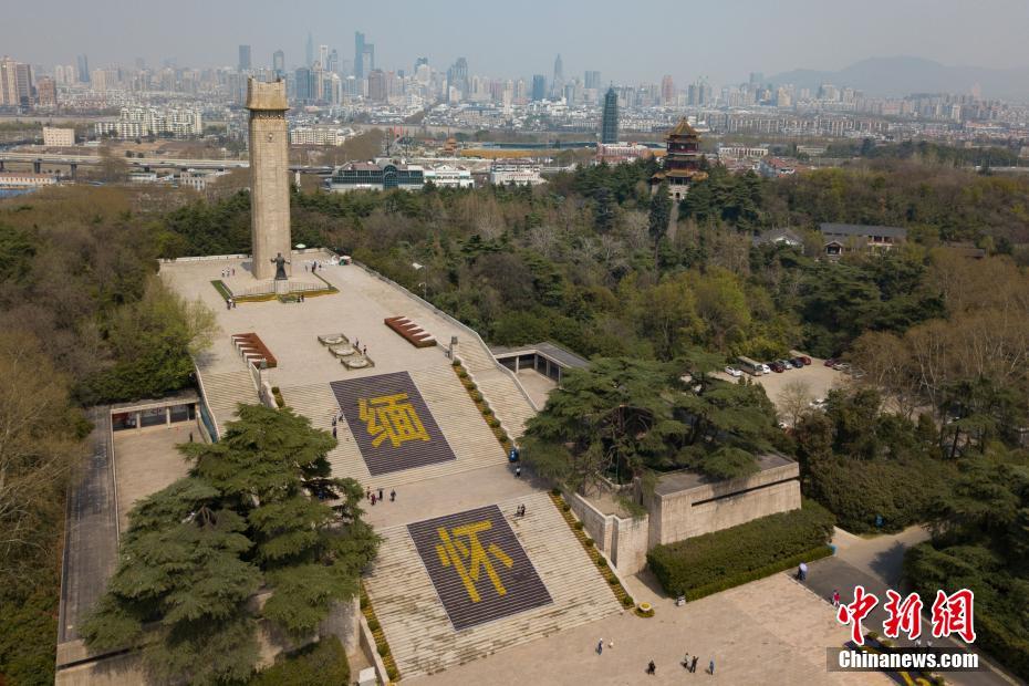 3月26日,南京雨花台烈士陵园内的烈士纪念碑前布置了由数万盆鲜花组成的“缅怀”花坛,以此表达对革命英烈的纪念之情。中新社记者 泱波 摄