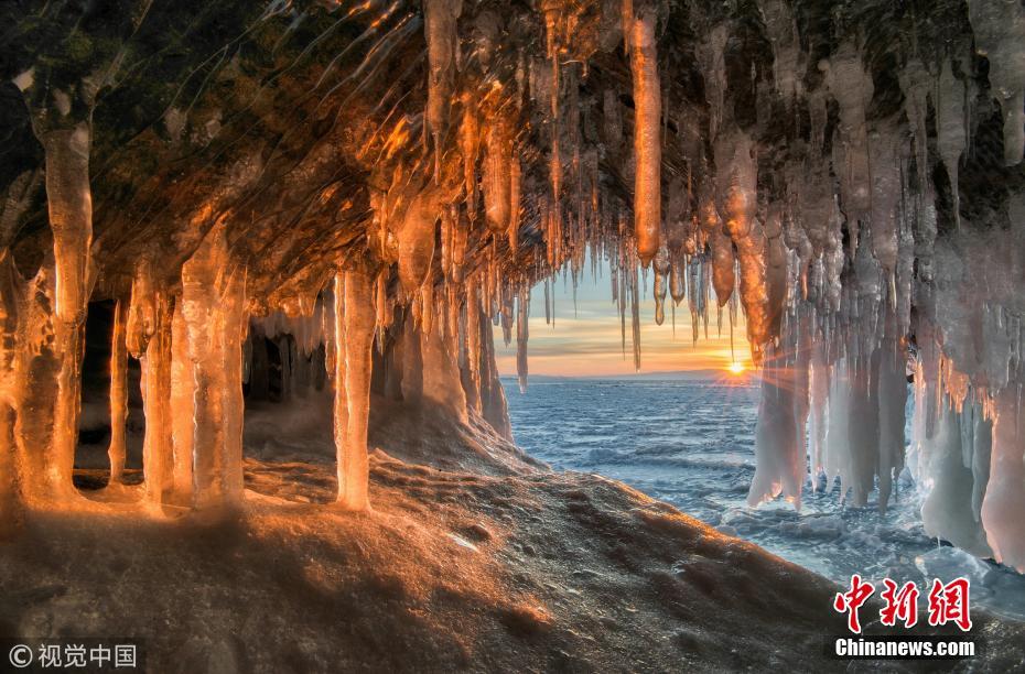 俄罗斯西伯利亚贝加尔湖,冰洞里成千上万的冰锥营造了一种超现实的美景。39岁的摄影师安德烈(Andrey Grachev)在世界上最深的湖泊旁发现了这些洞穴。这些冰锥就像倒置的哥特式建筑的尖顶,有的甚至有10英尺(约3米)长。安德烈来自莫斯科,他说这一景观是暴风雨造成的,大量的水渗入洞内后在低温中被立刻冻住。图片来源:视觉中国