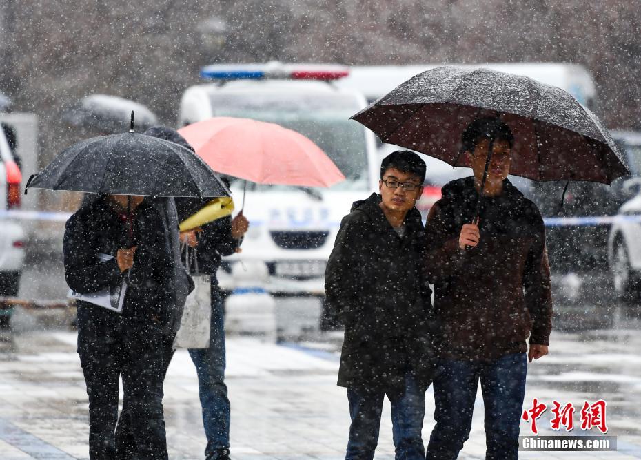 4月11日午后,新疆乌鲁木齐淅淅沥沥的降雨转变为一场纷纷扬扬的大雪,气温随之骤降,街头行人行色匆匆。据新疆气象部门介绍,这场冷空气给新疆大部分地区都带来了一定影响,北疆和东疆降雨或降雪天气,山区局地有大到暴雨或雪。同时从南疆西部翻山和随后东灌的冷空气将给塔里木盆地大部带来大风沙尘天气。中新社记者刘新 摄