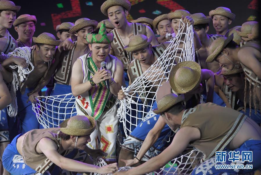 4月18日,在海南省五指山市,台湾少数民族同胞表演节目庆祝“三月三”。当日是农历三月初三,海南省黎族苗族同胞齐聚五指山市,欢庆“三月三”。新华社记者 赵颖全 摄