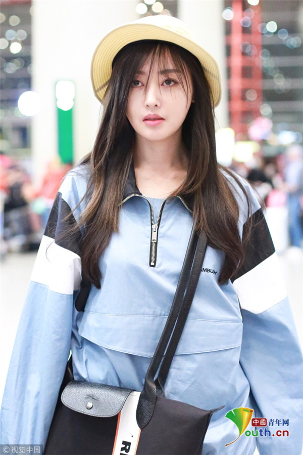 4月25日,张天爱现身北京机场。她留着空气刘海甜美清纯,头戴草帽长发披肩少女感十足。