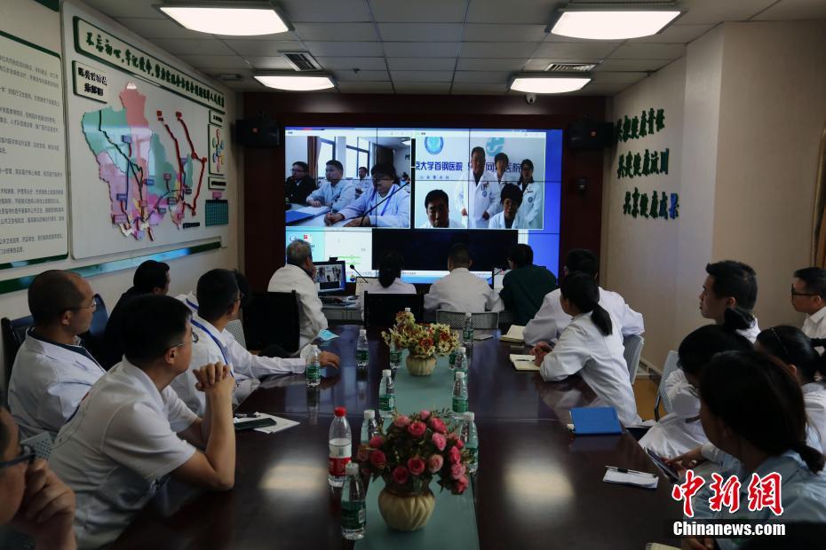 此次公益活动有近200家医疗机构的600余位医务志愿者参与,并前往汶川县威州镇、雁门乡、克枯乡、龙溪乡、绵虒镇等12个乡镇和县医院、县中医院开展爱心公益活动,并对在地震期间致残和因病返贫家庭进行慰问、巡诊和救助,此次公益活动为期5天。图为远程义诊。中新社记者任海霞 摄
