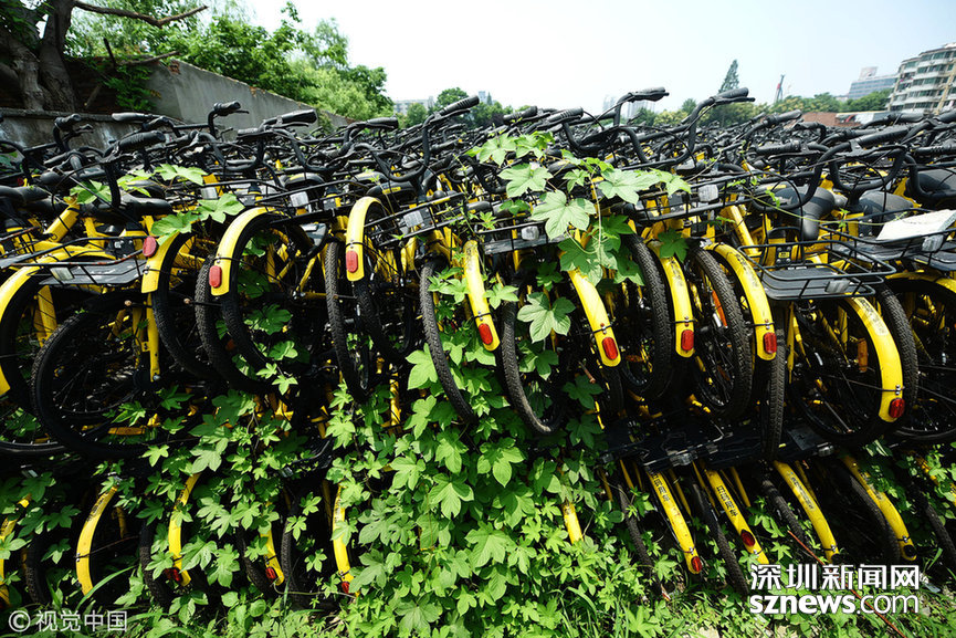 5万余辆小黄车堆成“黄色海洋” 场面壮观