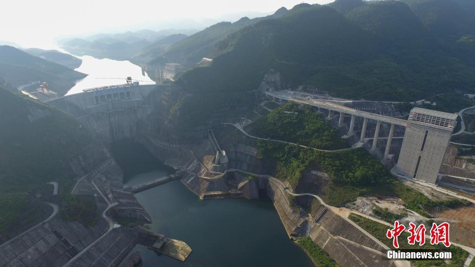 6月5日,贵州省乌江构皮滩水电站通航工程建设已接近尾声。第一级升船机主提升系统设备调试工作启动,第二级升船机主提升系统设备基本安装完成,第三级升船机主提升设备完成80%安装工作。构皮滩水电站通航工程设计标准为通航500吨级船舶,最高通航水头199m,是目前世界上通航水头和提升高度最高、主提升设备规模最大的通航工程。其通航设施建成后,可将黔中物资从贵州遵义县的乌江渡直达重庆市的涪陵入长江。图为航拍构皮滩水电站通航工程。中新社发瞿宏伦 摄