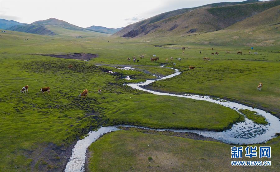 随着气温回升、降雨量逐渐增多,内蒙古草原开始进入全面返青期。新华社记者 彭源 摄