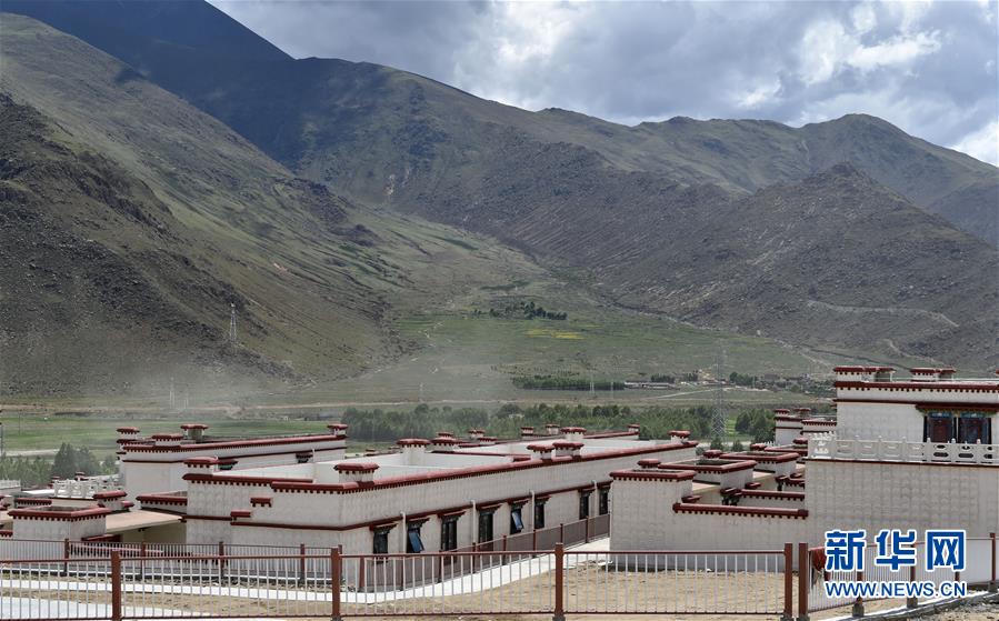 这是嘎冲村搬迁点工程部分建筑(6月18日摄)。 6月18日15时30分许,经过两天的驰骋,11辆大巴和31辆大货车缓缓驶入西藏拉萨市堆龙德庆区古荣乡嘎冲村,标志着西藏首个高海拔生态搬迁项目正式实施。这是一场跨越千余公里的远行。迁出地西藏那曲市尼玛县荣玛乡加玲加东村和藏曲村,分别距拉萨市1197公里、1247公里,平均海拔5000米以上。这两个行政村共有262户、1102人。据介绍,荣玛乡高寒缺氧,灾害频发,公共服务发展条件欠缺,不适宜人类生存,人均寿命远低于全区平均水平,且位于羌塘国家级自然保护区核心区内,属于国家禁止开发区。新华社记者觉果 摄