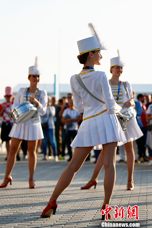 世界杯赛前俄罗斯美女鼓乐队抢眼