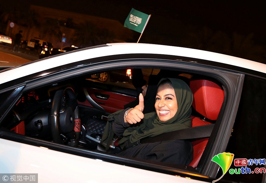 当地时间2018年6月24日,沙特阿尔科巴尔,沙特女性驾驶禁令正式解除,首批女司机上路。