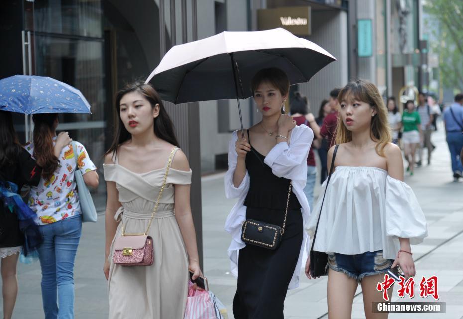 6月22日,进入夏季的成都春熙路、太古里热闹非凡,街头来来往往的时尚人士吸引了不少街拍爱好者。 中新社记者 刘忠俊摄