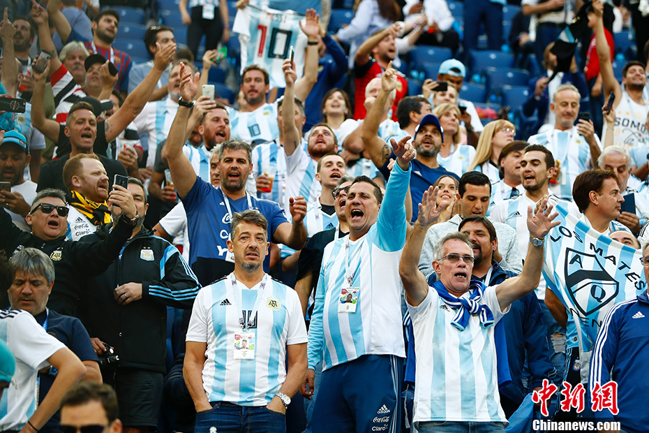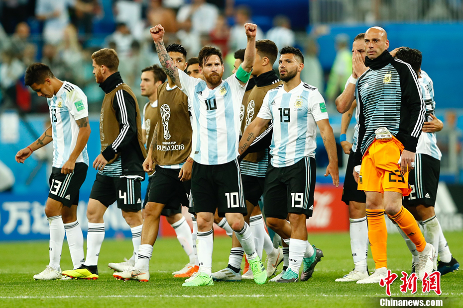 北京时间6月27日凌晨,2018俄罗斯世界杯D组阿根廷与尼日利亚的“生死战”在圣彼得堡新泽尼特体育场打响。梅西、罗霍建功,阿根廷队2-1战胜尼日利亚。在D组同时进行的另一场比赛中,克罗地亚2-1战胜冰岛,克罗地亚、阿根廷分列D组第一第二晋级16强。阿根廷将与C组第一法国队争夺一个8强席位。中新社记者 富田 摄