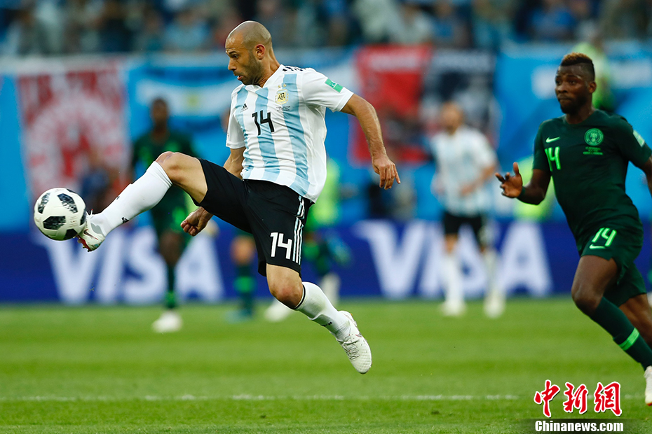 第86分钟,阿根廷队梅尔卡多传中,罗霍凌空推射打进死角。阿根廷再度超出比分,2-1。全场比赛结束,在这场D组“生死战”中,凭借梅西、罗霍的进球,阿根廷队2:1战胜尼日利亚,以小组第二惊险晋级16强。他们将与C组第一法国队争夺一个8强席位。中新社记者 富田 摄