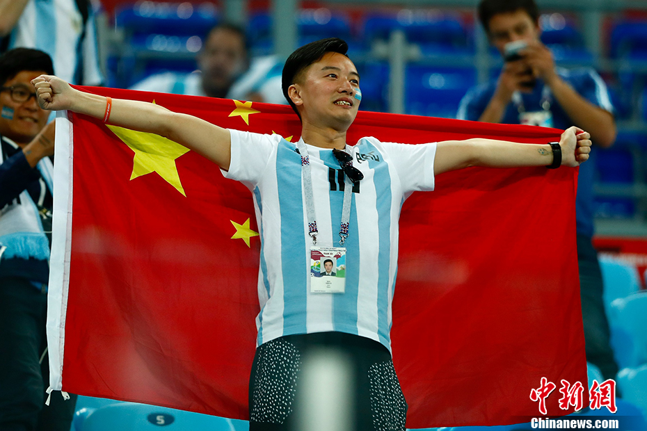 来自中国的阿根廷球迷。 中新社记者 富田 摄