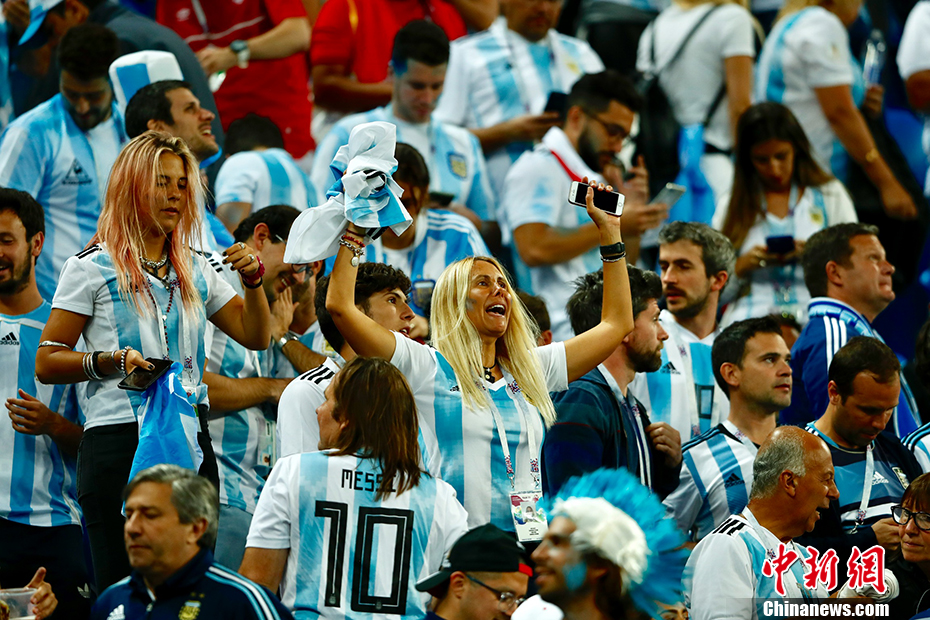 北京时间6月27日凌晨,2018俄罗斯世界杯D组阿根廷与尼日利亚的“生死战”在圣彼得堡新泽尼特体育场打响。梅西、罗霍建功,阿根廷队2-1战胜尼日利亚。在D组同时进行的另一场比赛中,克罗地亚2-1战胜冰岛,克罗地亚、阿根廷分列D组第一第二晋级16强。阿根廷将与C组第一法国队争夺一个8强席位。中新社记者 富田 摄