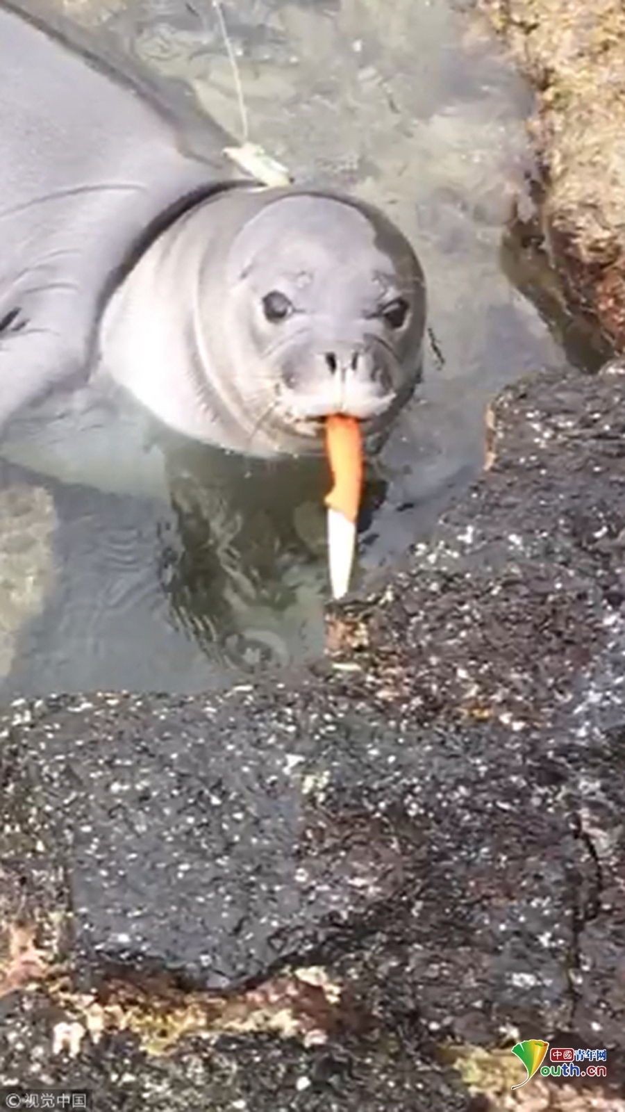 夏威夷濒危僧海豹幼崽口衔匕首危险万分