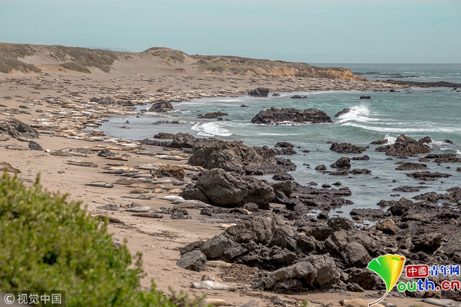 蠢萌象海豹集体午睡 占领整个海滩场面壮观
