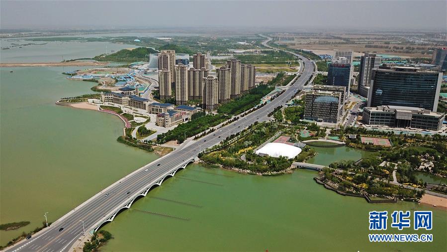 宁夏银川市阅海湖(5月17日无人机拍摄)。 新华社记者 王鹏摄