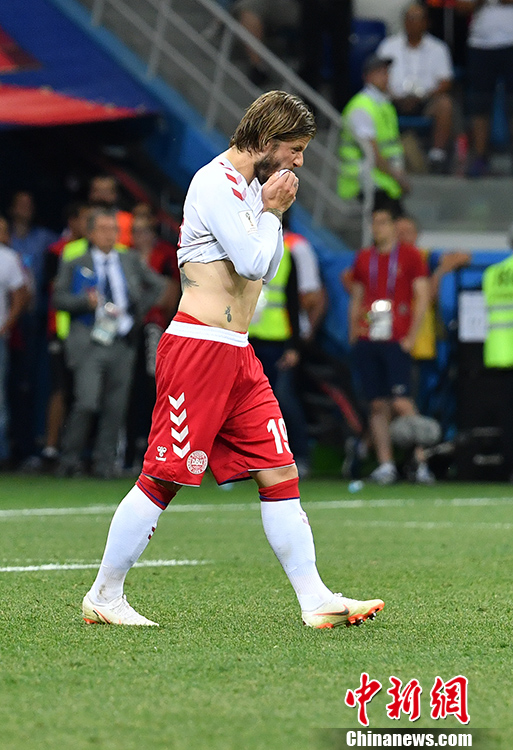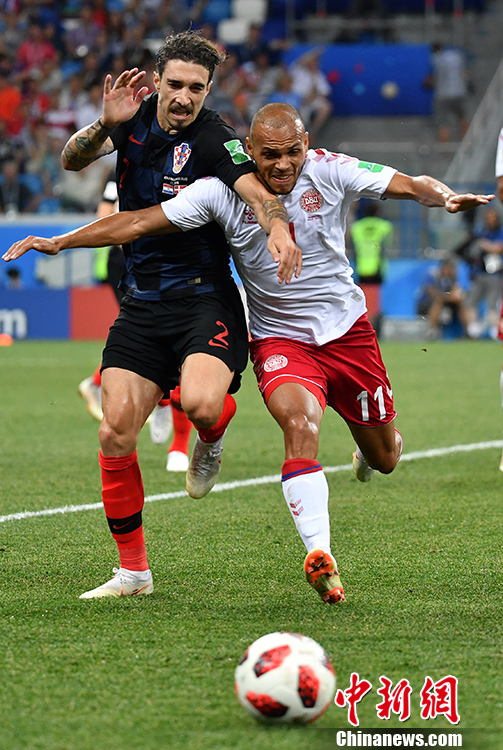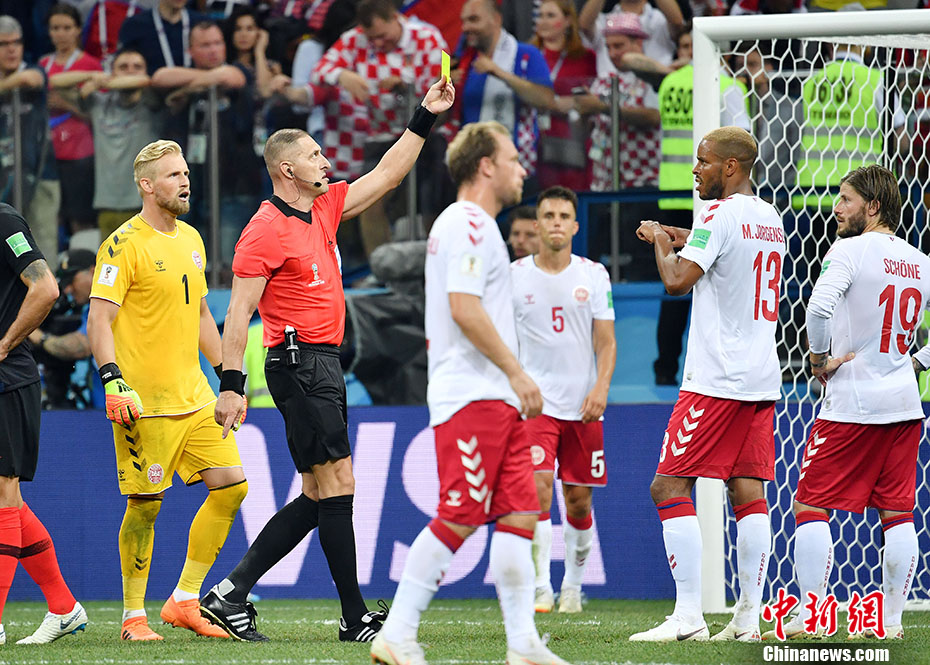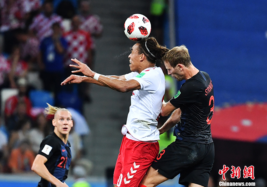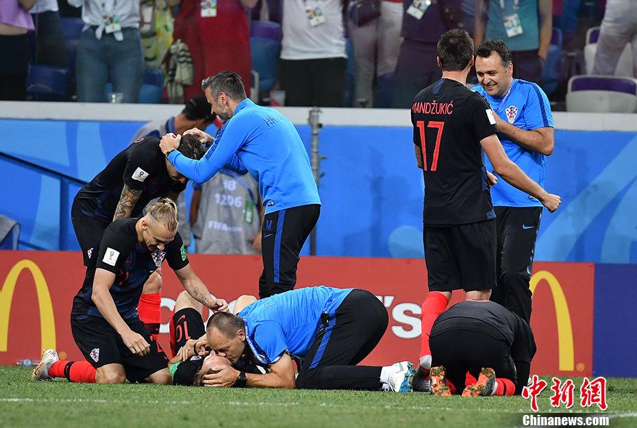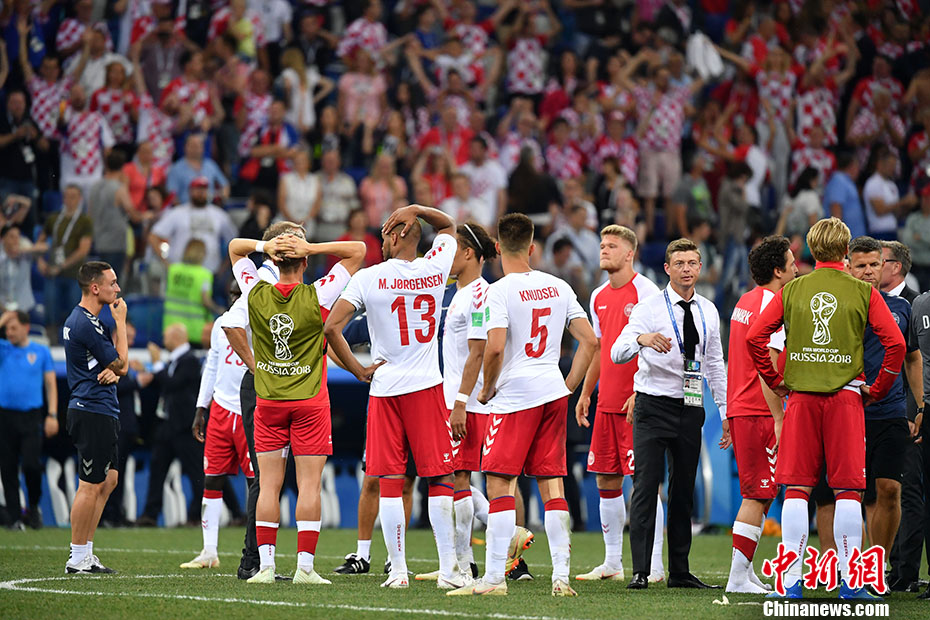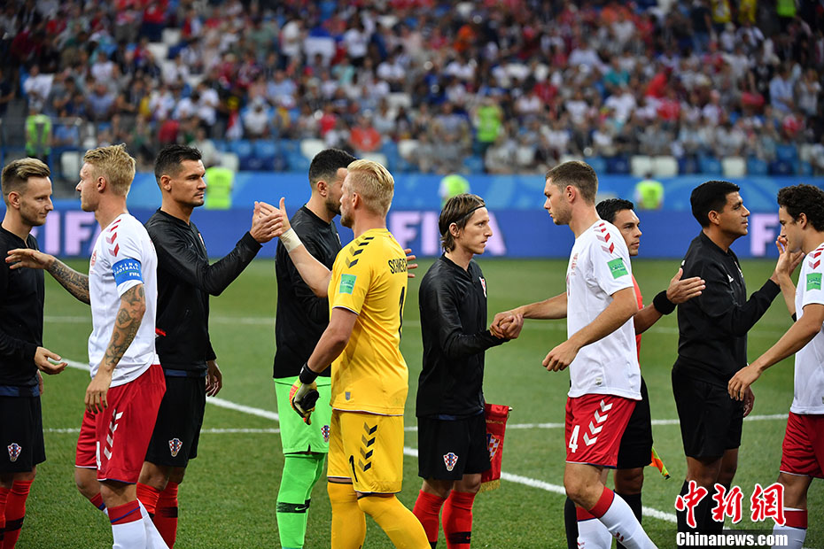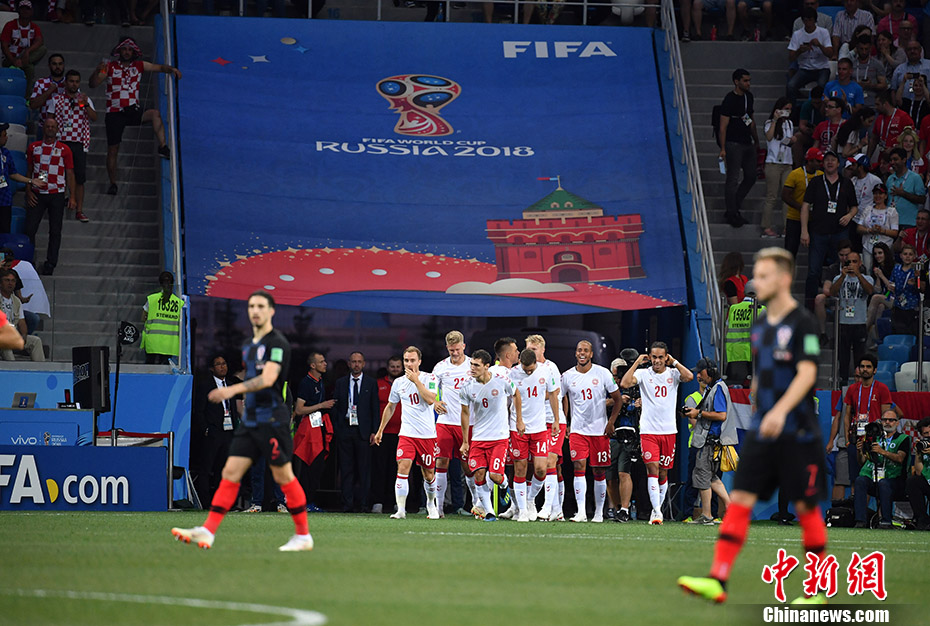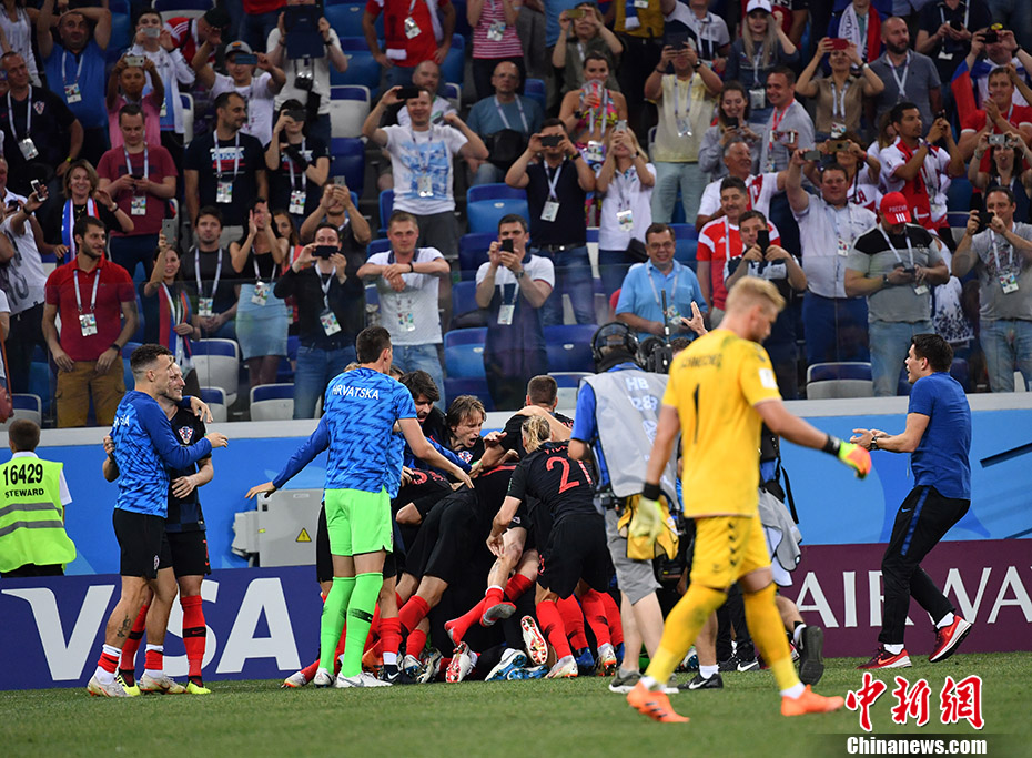 最终,在残酷的点球大战中,丹麦队埃里克森、舍内、约根森罚丢点球,克罗地亚点球大战3:2获胜,丹麦队遭到淘汰,“格子军团”克罗地亚成为第四支晋级8强的队伍,他们将在接下来的1/4决赛中面对东道主俄罗斯。中新社记者 毛建军 摄