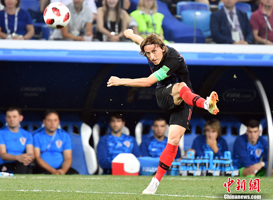 本届世界杯,克罗地亚队展现出强大的进攻能力。小组赛中,仅有3支队伍全胜晋级,克罗地亚是其中之一,这也是他们自1998年夺得第三名以后,20年来首次晋级淘汰赛。如今的这支克罗地亚,堪称是98年“黄金一代”后的最强一代。此役,下诺夫哥罗德再次点燃战火,克罗地亚显然更有信心,因为他们同一块场地上,3:0大胜阿根廷,送给“潘帕斯雄鹰”60年来最惨痛的小组失利。图为莫德里奇在赛场上。中新社记者 毛建军 摄