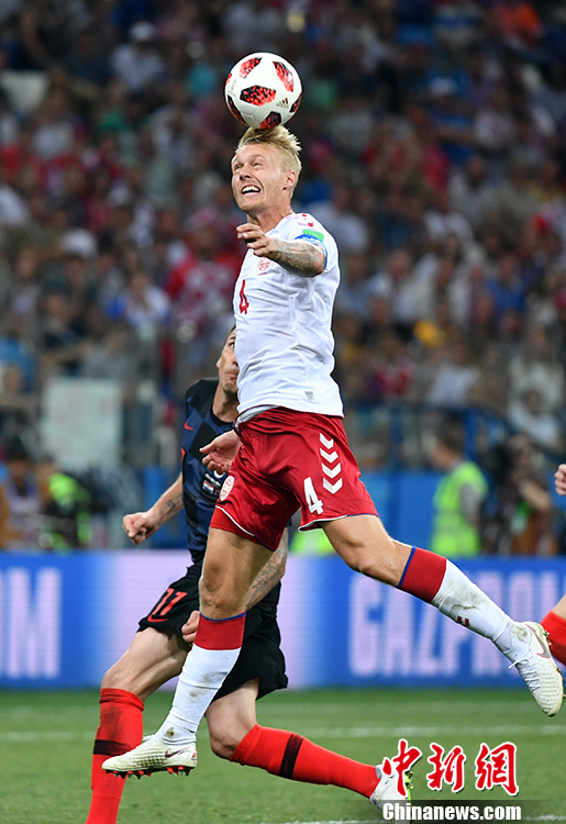 丹麦队凯尔争顶。 中新社记者 毛建军 摄