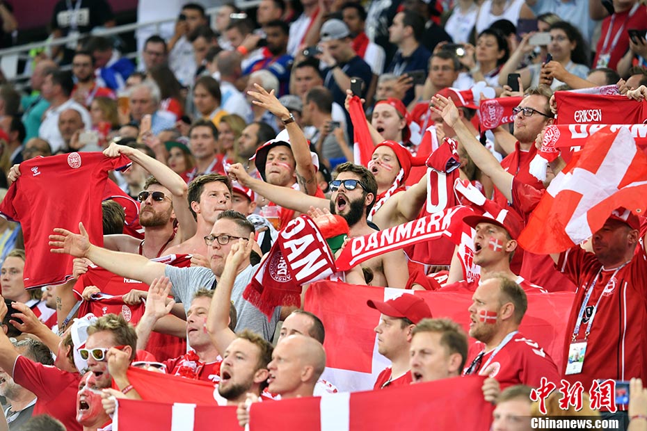 反观丹麦队,如果说克罗地亚是进攻之矛,那丹麦队就是防御之盾。3场比赛,丹麦队仅进2球,但只丢1球,同时,丹麦在各项比赛中已连续18场保持不败。小舒梅切尔像他的父亲一样,保护着丹麦队的球门,三场比赛扑救14次,只有一个点球的失球。中新社记者 毛建军 摄