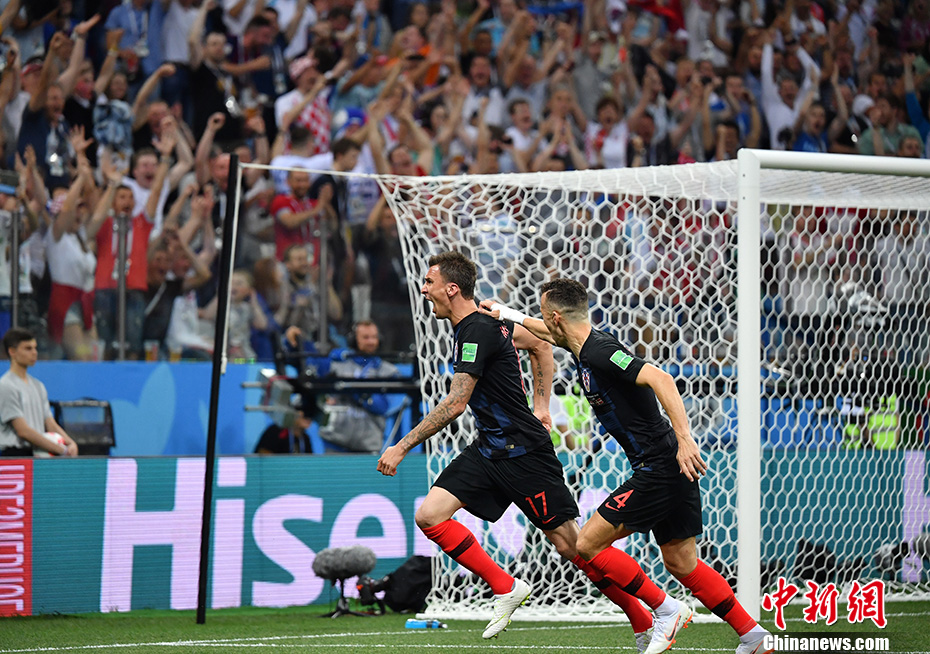 克罗地亚队庆祝进球。 中新社记者 毛建军 摄