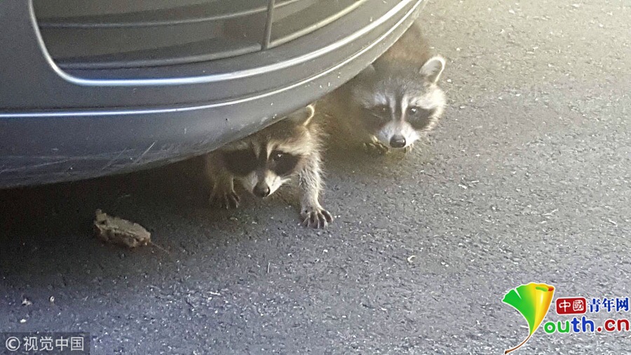 原本被以为只有三只浣熊,结果发现有六只,其中四只躲藏在汽车引擎中。