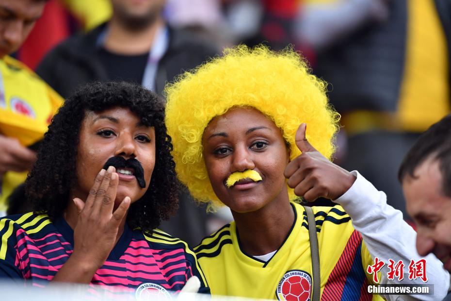 打扮夸张的哥伦比亚球迷。 中新社记者 毛建军 摄