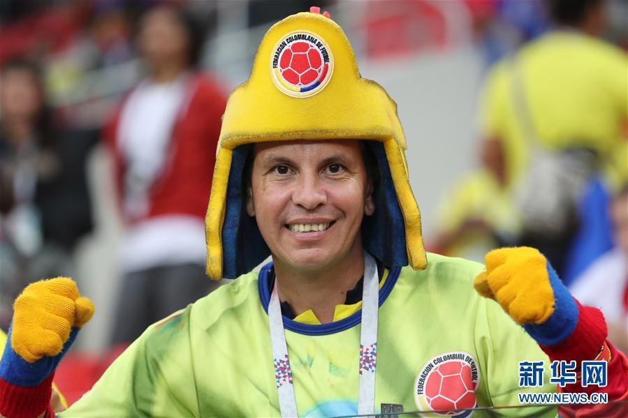7月3日,哥伦比亚队球迷在比赛前。当日,在莫斯科进行的2018俄罗斯世界杯足球赛八分之一决赛中,英格兰队对阵哥伦比亚队。新华社记者吕小炜摄