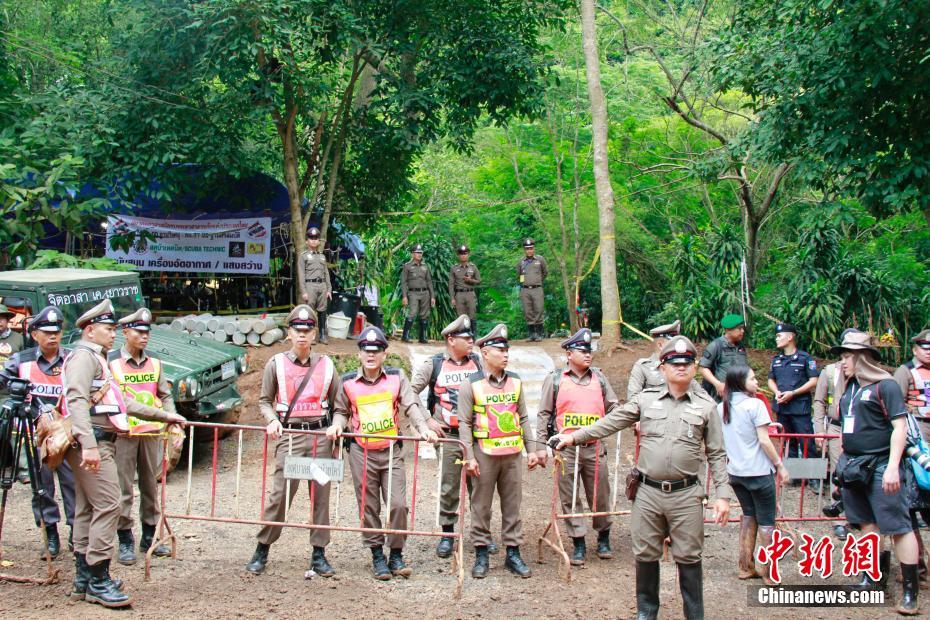 泰国军警封锁进入洞穴的路口,与救援无关人员不允许进入。中新社记者 王国安 摄