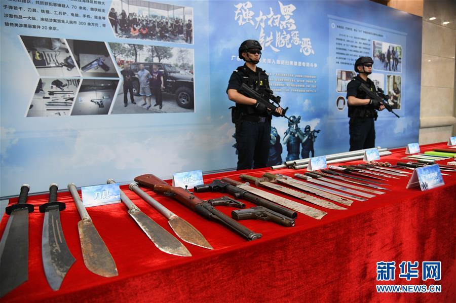 7月5日拍摄的广东警方查扣的涉黑涉恶团伙的涉案物品。