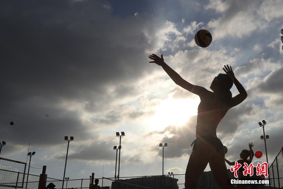 7月11日,在南京举行的2018国际排联沙滩排球U19世界锦标赛进入第二天的赛程,中外运动员轮番上场,捉对“厮杀”,一决高下。中新社记者泱波 摄