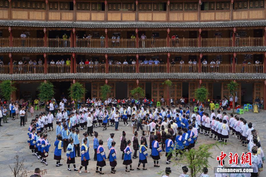 相思节上盛装踩歌堂的少数民族民众。中新社记者 贺俊怡摄