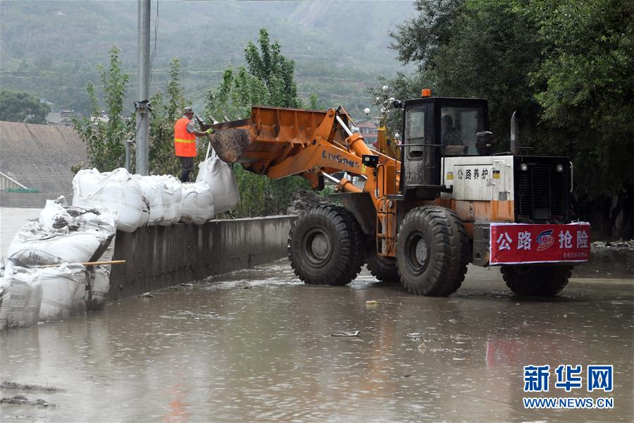 7月16日,在舟曲县境内,公路抢险人员在通往南峪乡的道路上作业。 新华社记者 范培珅 摄