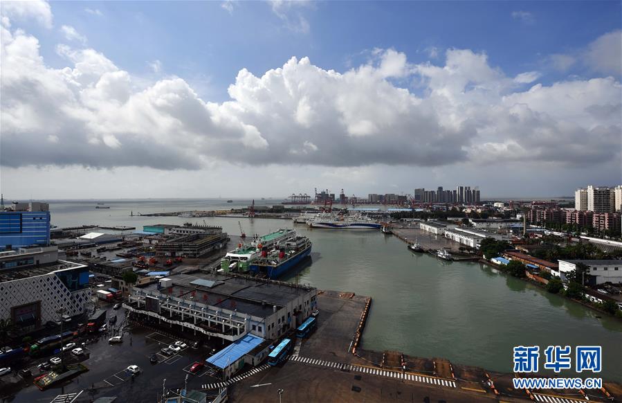 7月17日,几艘客滚轮在海口港停靠。 新华社记者郭程摄