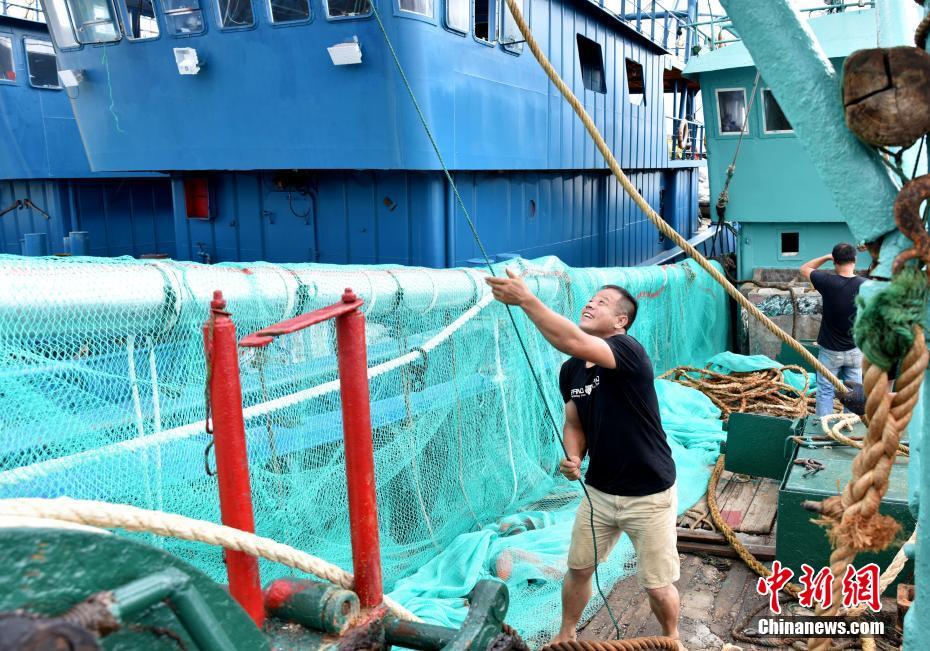 7月21日,一位渔民正在加固停靠的船只。当日,今年第10号台风“安比”逐步临近浙江沿海区域,宁波、舟山等沿海城市海事部门随即开展巡航检查、人员疏散等工作。同时,大量的渔船纷纷归港避风。中新社记者 何蒋勇 摄