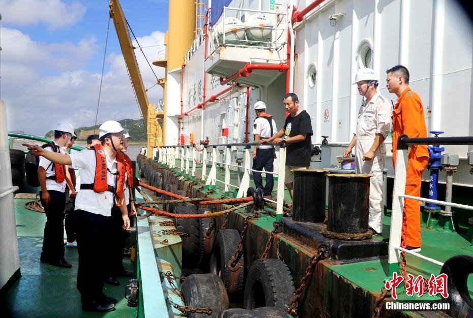 7月21日,海事部门工作人员正在码头进行相关检查。当日,今年第10号台风“安比”逐步临近浙江沿海区域,宁波、舟山等沿海城市海事部门随即开展巡航检查、人员疏散等工作。同时,大量的渔船纷纷归港避风。中新社发 张磊 摄
