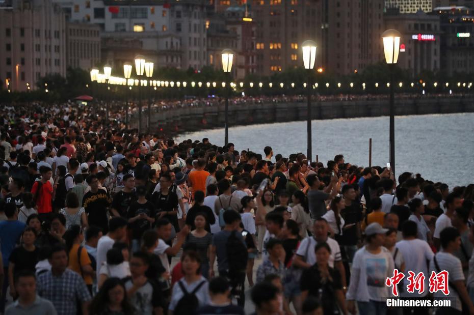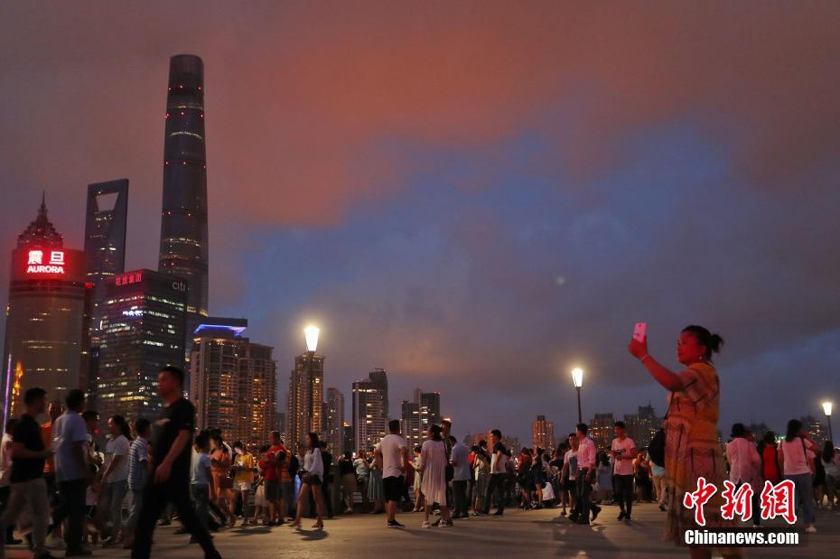 7月20日晚,台风“安比”登陆前夜,上海外滩游人如织,民众们抓住最后时刻畅游上海美景。据上海中心气象台预测,台风“安比”最大可能穿过舟山群岛,于22日上午到中午在上海沿海登陆,登陆时为强热带风暴级。中新社记者 张亨伟 摄
