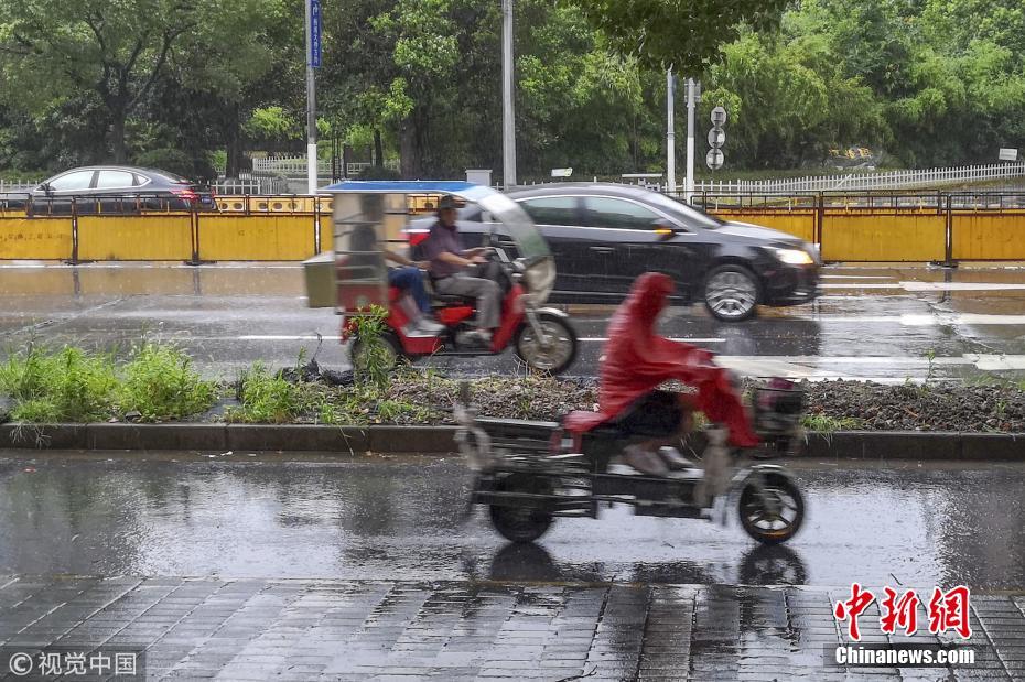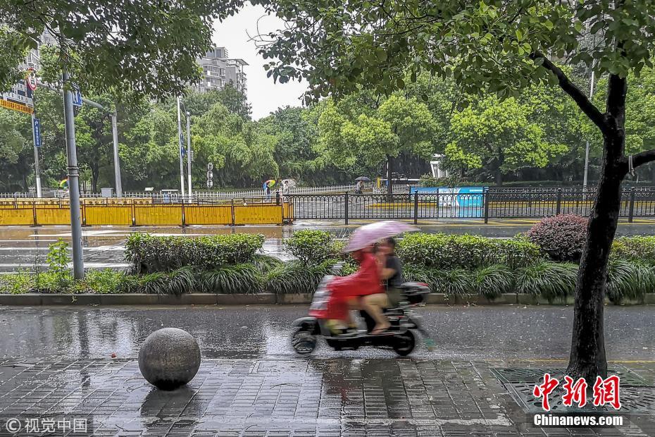 2018年7月22日,上海,台风“安比”预计当日中午登陆上海沿海,早10时许,杨浦区江浦路街头天色昏暗,风雨交加,路人行色匆匆。图片来源:视觉中国