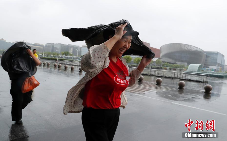 7月22日,一名路人试图用雨伞抵御狂风。当日,受台风“安比”影响,上海局部出现狂风暴雨。 中新社记者 汤彦俊 摄