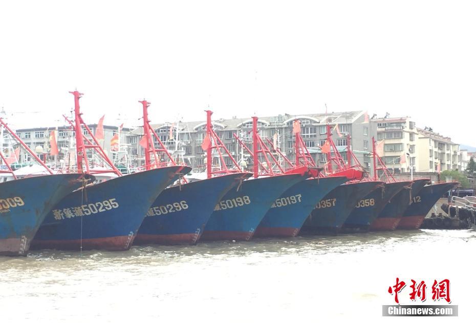 7月21日,多艘渔船在港内避风。当日,今年第10号台风“安比”逐步临近浙江沿海区域,宁波、舟山等沿海城市海事部门随即开展巡航检查、人员疏散等工作。同时,大量的渔船纷纷归港避风。中新社记者 何蒋勇 摄