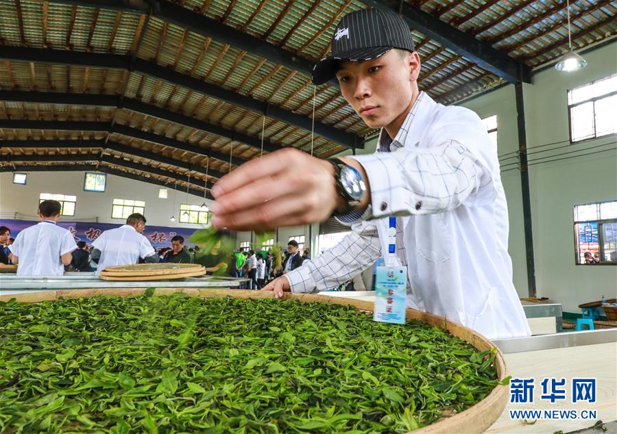 贵州毕节市七星关区亮岩镇太极村的一名茶农在参加当地举办的茶艺大赛(5月12日摄)。新华社记者 刘续 摄