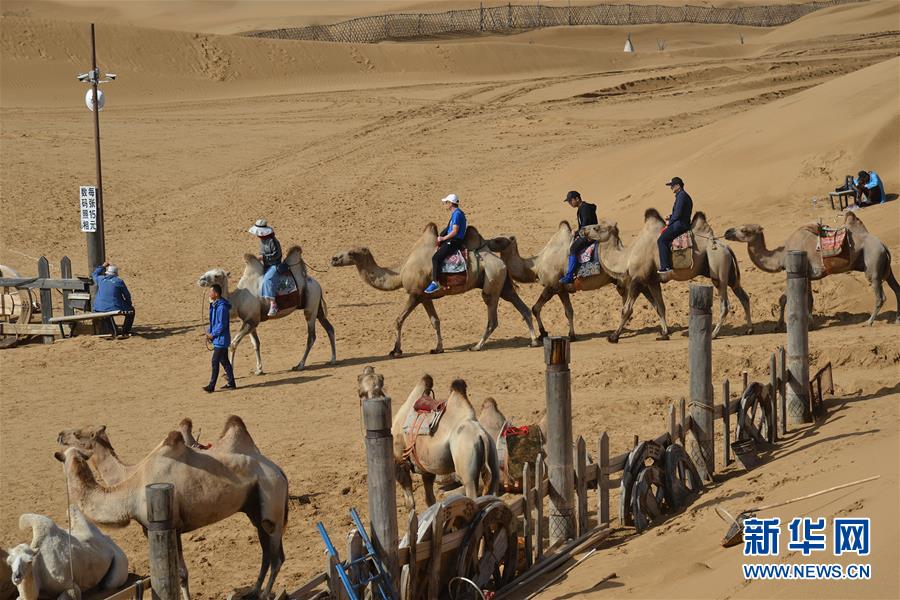 随着暑期旅游旺季的来临,位于内蒙古库布其沙漠的响沙湾、七星湖等景区迎来了来自全国各地的游客。人们在沙漠中体验索道、骑行、冲浪车等旅游项目,领略大漠壮美景观。新华社记者 邹予 摄