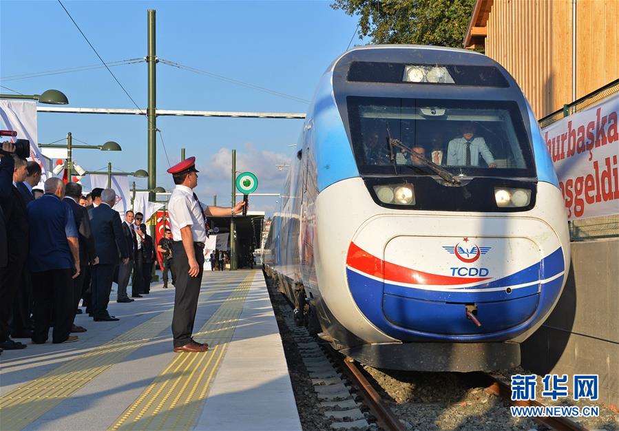 2014年7月25日,首趟安伊高铁列车抵达土耳其伊斯坦布尔站。连接土耳其首都安卡拉和土最大城市伊斯坦布尔的高速铁路二期工程由中国企业参与建设。新华社记者卢哲 摄