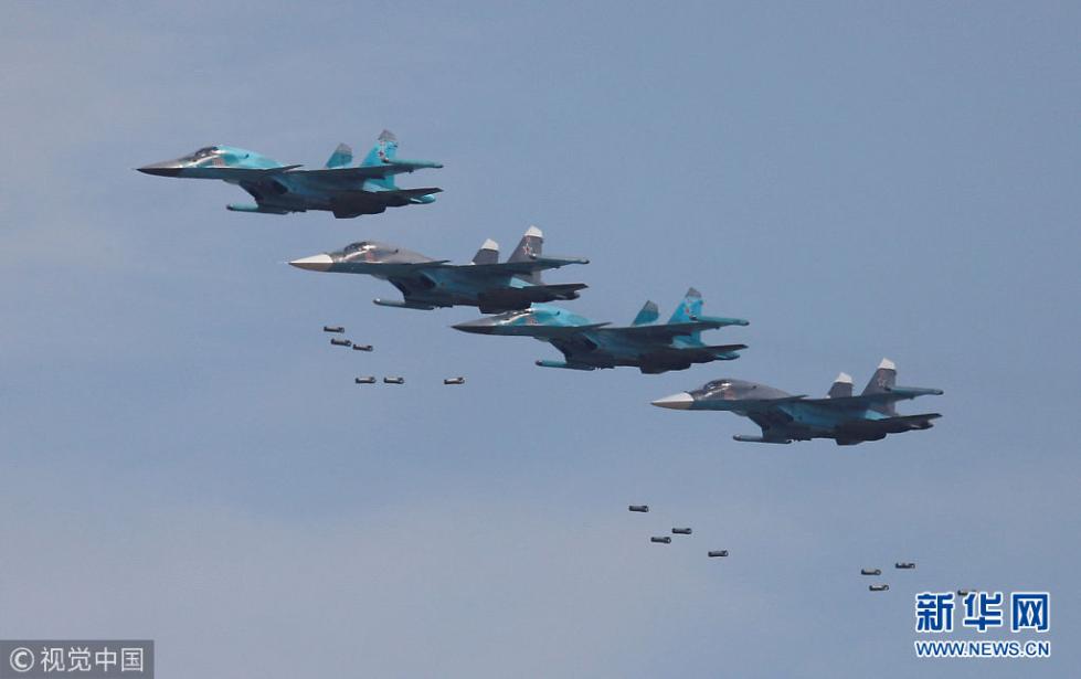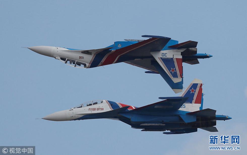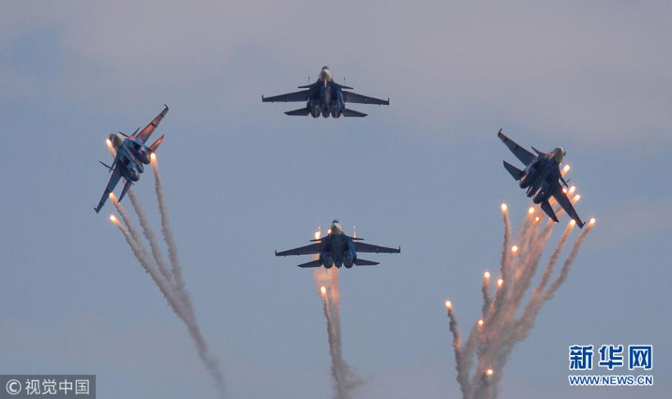 当地时间2018年8月4日,俄罗斯梁赞,2018“航空飞镖”国际军事比赛即将开幕,特技飞行队在彩排。(图片来源:视觉中国)