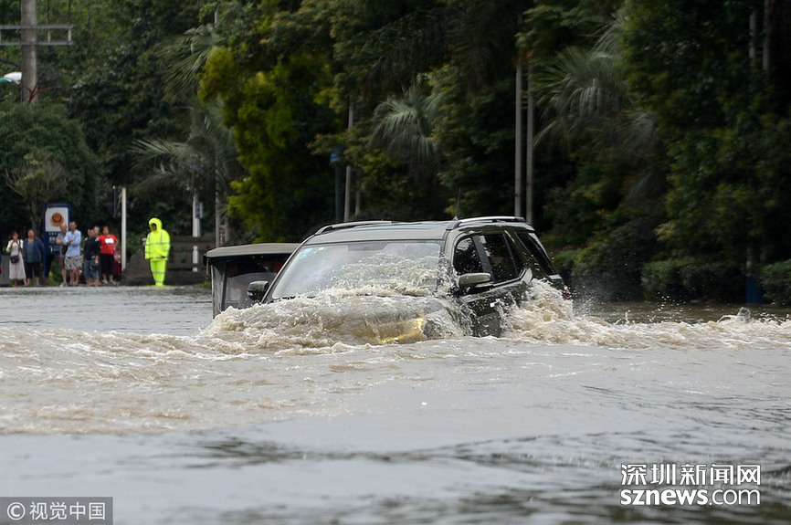 2018年7月11,四川省彭州市蒙阳镇,车辆经过积水路面。(成都商报摄影记者 王效/视觉中国)